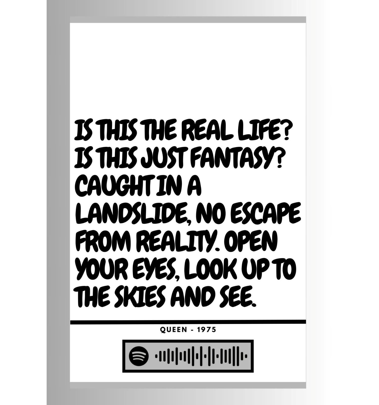Optional Spotify barcode – scan in the Spotify app in featured prints to instantly play your chosen song.