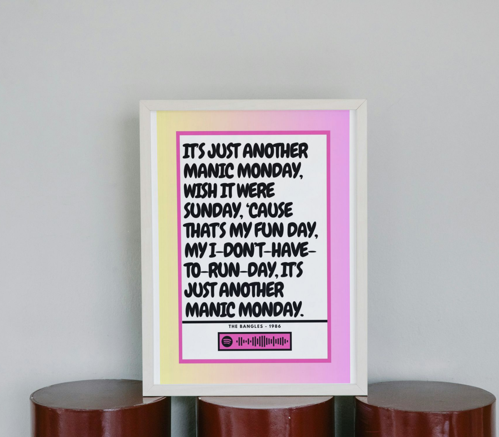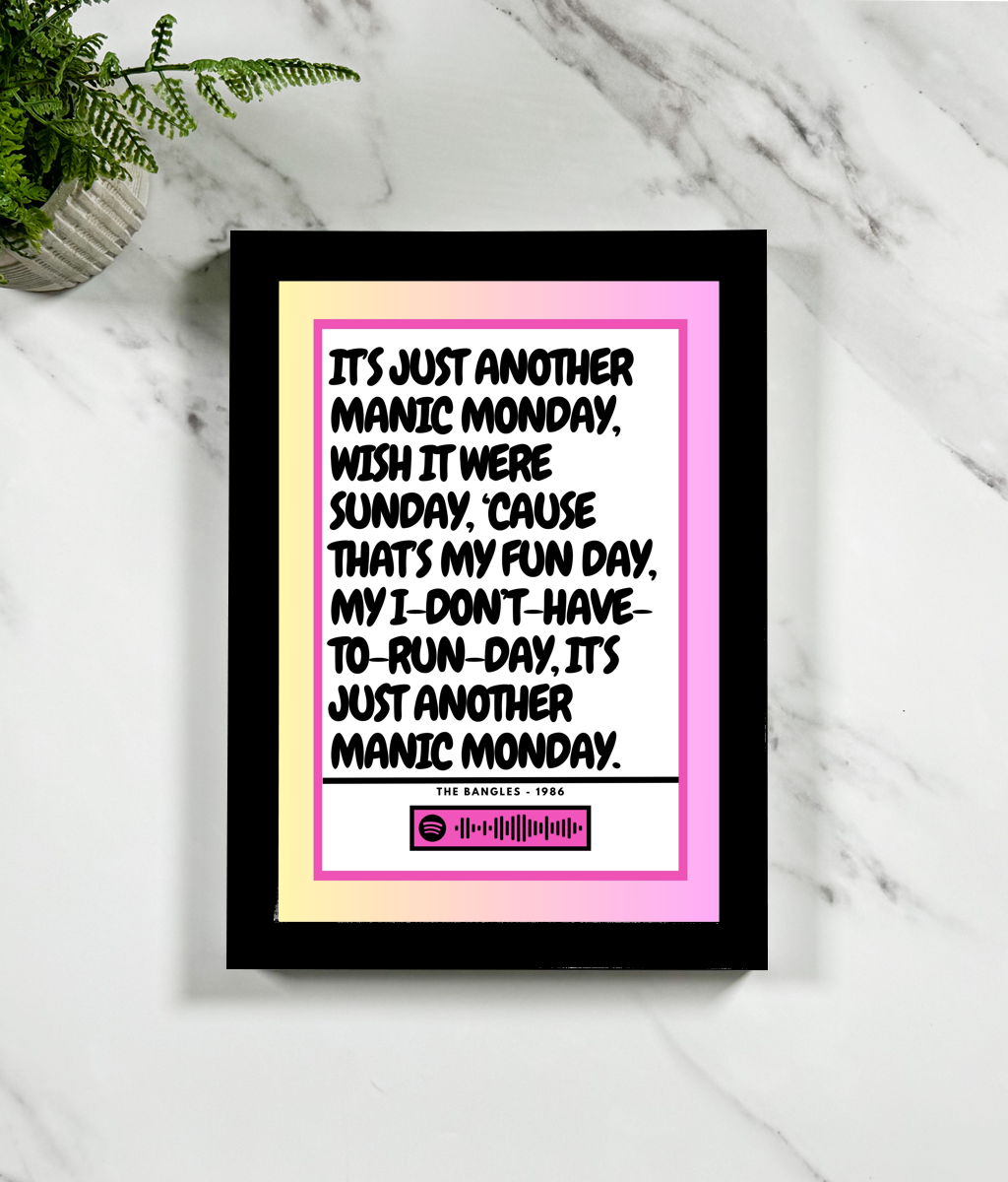 📱 Optional Spotify barcode – scan in the Spotify app in featured prints to instantly play your chosen song.